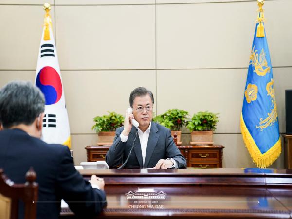 문 대통령이 먼저 “워싱턴 주정부의 자택대기령에 따라 요즘 자택에서 근무하고 계신다고 들었는데, 전화로나마 처음 인사를 하게 되어 반갑다”면서 “통화를 제의해 주셔서 감사드린다”고 말했다.