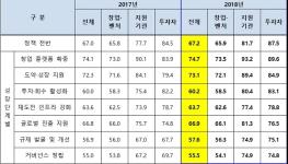 정책인지도는 100점 만점에 67.2점으로 전년도 67.0점과 거의 비슷한 수준이며, 정책만족도는 71.8점으로 전년 70.6점보다 소폭 상승했다.