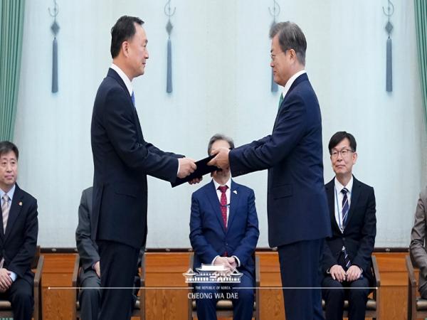 이날 임명장 수여식 및 환담에는 노영민 비서실장, 정의용 국가안보실장, 김상조 정책실장, 윤도한 국민소통수석, 김외숙 인사수석 등이 배석했다.