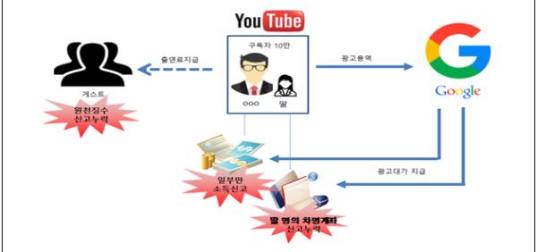 이들 고소득 크리에이터 중 일부는, 구글(Google) 등 해외 플랫폼 사업자로부터 고액의 광고대가를 받으면서 차명계좌를 동원하거나 소액으로 송금액을 쪼개어 받는 방법으로 소득을 분산?은닉하여 과세당국의 감시를 회피하고 탈세를 한다는 우려가 제기되고 있으며 실제 세무조사 과정에서도 이와 같은 사례가 일부 확인되기도 하였다.