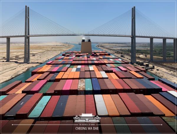지난 4월 23일 문재인 대통령과 김정숙 여사가 참석한 가운데 명명식이 거행되었던 2만4,000TEU급 세계 최대 컨테이너선 ‘HMM 알헤시라스’호가 ‘세계 최대의 운하’ 수에즈(Suez)를 25일 안전하게 통과했다.
