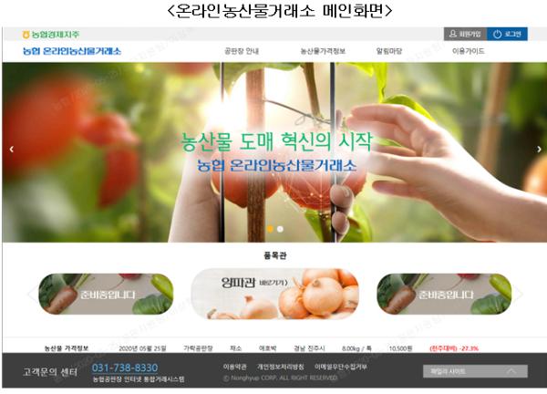 농림축산식품부(장관 김현수)와 농협(회장 이성희)은 정보통신기술(ICT)을 활용하여 온라인으로 농산물을 도매 유통하는 온라인 농산물 거래시스템을 5.27일부터 시범 운영한다고 밝혔다.