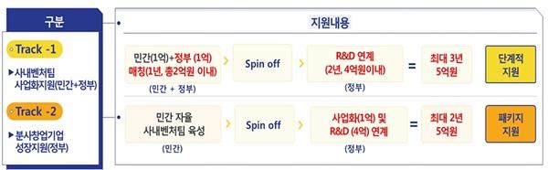 민간 기업이 스스로 사내 벤처를 육성하고자 하면 정부가 사내 벤처의 육성 체계와 기반을 뒷받침해 준다는 취지다.