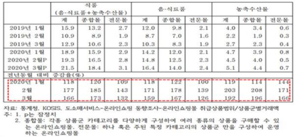 “특히 코로나 이후 소비형태 변화도 뚜렷하다. 통계청의 도소매 서비스-온라인쇼핑 동향조사 자료에 의하면 농축수산물의 소비증가율은 음·식료품 증가율에 비해 훨씬 높았으며 대부분 전년동월 대비(‘20년 1~3월) 114~208% 범위까지 급상승하였다. 즉 온라인 쇼핑 판매 증가와 1차 수급에 대한 제주 1차산업이 주의깊게 보아야 할 부분”이라고 강조 하였다.