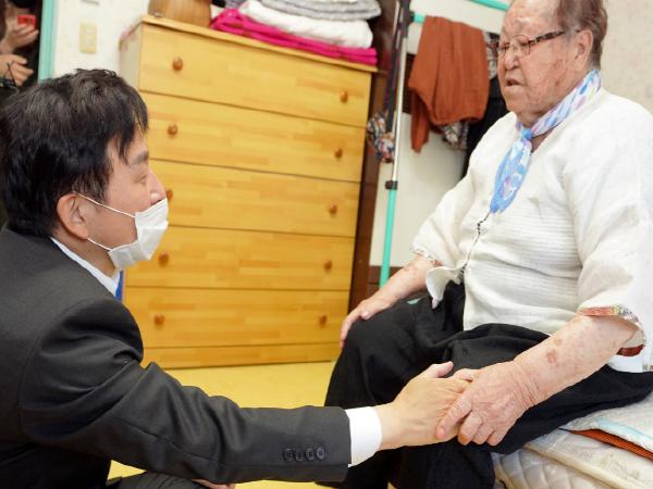 원희룡 지사는 “건강한 모습을 뵈니 마음이 놓인다”는 말과 함께 절로써 안부 인사를 여쭈며 나라를 위해 목숨을 바친 국가 유공자의 유가족에 대한 예를 갖췄고, 오병화씨는 이에 대해 “와주셔서 너무 고맙다”는 말로 답했다.