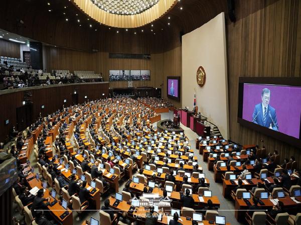 문 대통령은 그러한 새로운 사회계약이 “노사정 대타협으로 이뤄지도록 또 다른 노력을 해야 한다”며 “국회도 힘을 모아 달라”고 당부했다.
