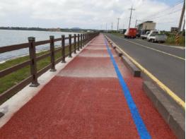 또한 해안도로를 따라 설치되었던 철제 안전펜스도 염분에 의해 부식이 쉽고 경관을 저해하므로 주변 환경에 어울릴 수 있도록 합성목재 펜스로 교체하였다.
