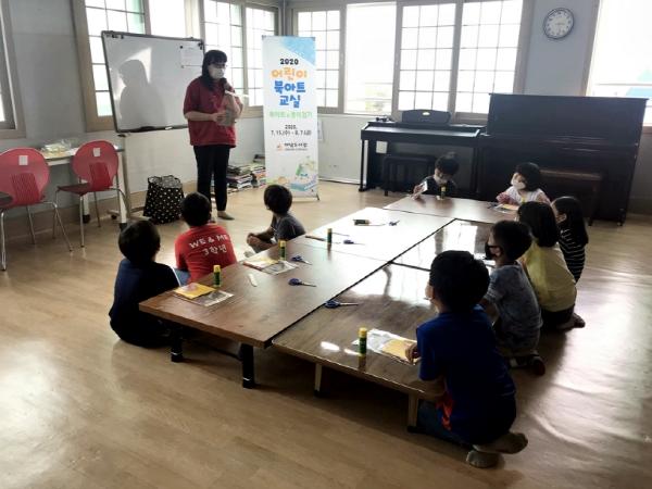 어린이 북아트 교실은 지역아동센터 지원 사업으로, 위미지역아동센터 이용 초등학생 저학년을 대상으로 7월 15일부터 8월 7일까지 8회 동안 강수영(어린이 북아트 전문지도사) 강사의 지도로 운영되며, 어린이들의 흥미를 끌 수 있는 종이접기를 활용한 다양한 북아트 활동으로 진행된다.