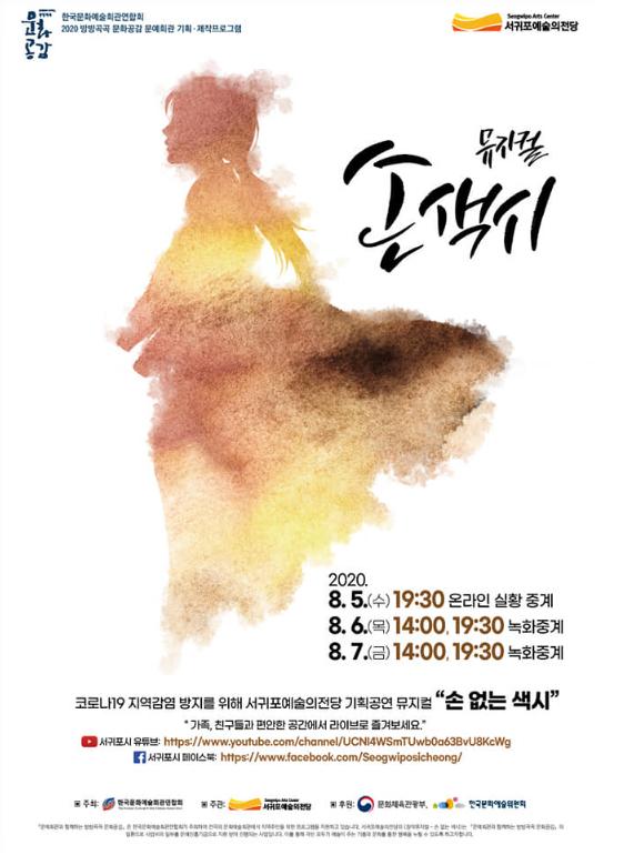 서귀포예술의전당(관장 고택수)은 오는 8월 5일 저녁 7시 30분 공연 예정인 창작 뮤지컬 “손 없는 색시”를 무관중 온라인 생중계 한다고 밝혔다.
