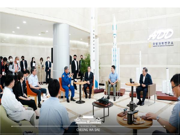 이후 문재인 대통령은 격려 간담회를 통해 연구소 직원들의 목소리를 직접 청취했다. 다만 연구소의 보안 특성상 직원들의 이름은 공개되지 않았다.