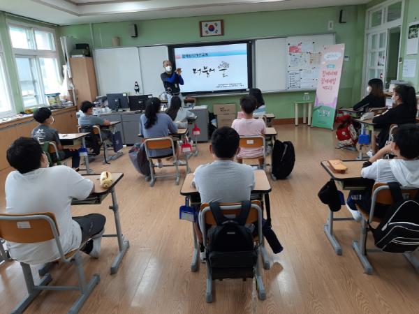 이번 교육은 도 장애인종합복지관의 장애인 인식개선 강사를 초빙하여 서광초등학교 전교생 105명 대상으로 코로나19 생활 속 거리두기 수칙 및 방역지침을 준수하여 각 반별로 진행되고 있으며,