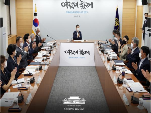 대통령은 모두발언을 통해 "오늘 노사정 협약의 체결은 코로나 경제 위기 극복을 위해 경제주체들이 서로 한발씩 양보하여 이루어낸 소중한 결실"이라고 평가했다. 이어 "민주노총이 막판에 불참하여 아쉽지만 경제사회노동위원회의 제도적 틀 속에서 이루어진 매우 의미 있는 성과"라며 노사정 대표들께 사의를 표했다.