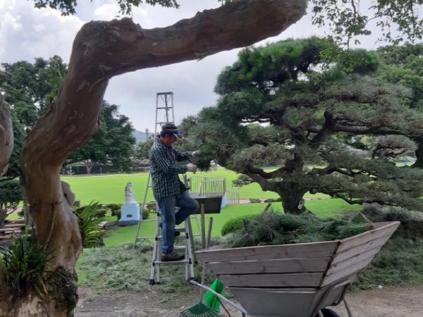 수산초등학교(교장 강인자)는 지난 7월 28일(화)부터 7월 29일(수)까지 교목인 소나무 전정을 실시하였다. 수산초 교목은 워낙 수령이 오래되고 값어치가 높아 전문가가 아니고서는 손을 대기가 어려운 상태였는데 수산초 제70회 졸업생 이예나 학생 할아버지(이성모씨)의 재능기부로 아름다운 소나무로 거듭나게 되었다.